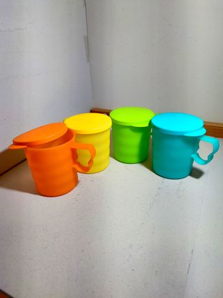 4 Tazze colorate Tupperware 350ml h9cm con Coperch