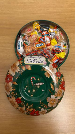 carillon contenitore/centrotavola con decorazioni natalizie marca: Marie Ange DiCosta 🎶 - all’interno nella parte del coperchio, si trova il meccanismo FUNZIONATE del carillon 🍬 - la parte sotto, è utilizzata per contenere biscottini, dolcetti, cioccolatini ecc. 📦 - senza scatola originale, ma in condizioni perfette e senza difetti! 💰viene venduto su altri siti a 20€, prezzo trattabile! 🎁 perfetto come idea regalo!