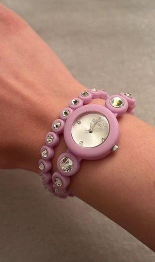 ⌚️orologio stroili oro in silicone lilla con brillantini (non mancano brillantini) + pila funzionante il cinturino è molto morbido e fa un doppio giro intorno al polso, come si può vedere nell’ultima foto, ed è ovviamente regolabile! 🆕non è mai stato indossato, tranne nelle foto 🎁perfetto per un regalo, in quanto ha la contenzione originale in ottime condizioni, come se fosse nuovo!