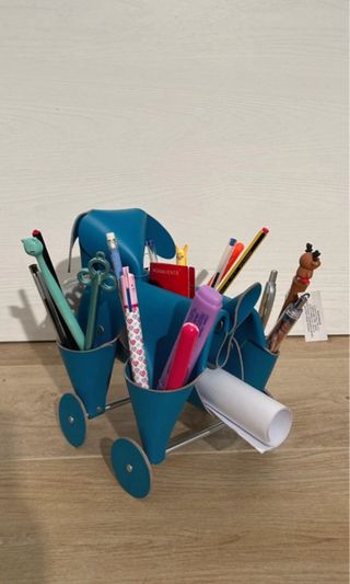 Originale portapenne a forma di cane del brand Vacavaliente. Realizzato in pelle di colore turchese. - Design a forma di cane con rotelle - Materiale: pelle riciclata - Colore: turchese mai utilizzato ed ancora con il cartellino permette di inserire foglietti, matite, penne e altri oggetti l’ho trovato in vendita su vari siti a non meno di 40€