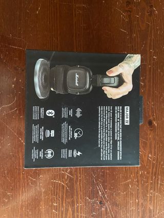 Cuffie Marshall Major III Bluetooth, perfette per ascoltare la tua musica preferita. - Design iconico Marshall. - Connessione Bluetooth per un'esperienza wireless. - Oltre 30 ore di riproduzione wireless. Cuffie nuove, mai rimosse dalla confezione originale.