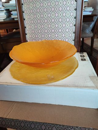 IVV CENTROTAVOLA CIOTOLA PIATTO SOTTOPIATTO VETRO CM.35 ROTONDO NUOVO MADE IN IT Dimensioni: diametro piatto 35cm, diametro ciotola: 33cm altezza 10cm Con eitchetta 📦 Spedizione rapida e con massima cura nell'imballaggio, oppure ritiro a mano disponibile in zona. Non esitare a chiedere ulteriori informazioni o foto aggiuntive!