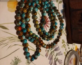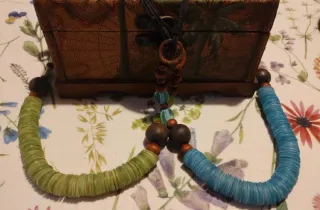 Collana perle legno blu e marrone