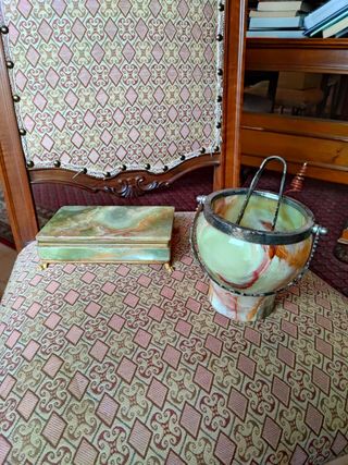 COFANETTO PORTAGIOIE E SECCHIELLO VINTAGE Dimensioni bauletto: 18x11 h5 Dimensioni vaso verde: diametro bordo sopra 11, diametro ingombro 13cm, h13) 📦 Spedizione rapida e con massima cura nell'imballaggio, oppure ritiro a mano disponibile in zona. Non esitare a chiedere ulteriori informazioni o foto aggiuntive!