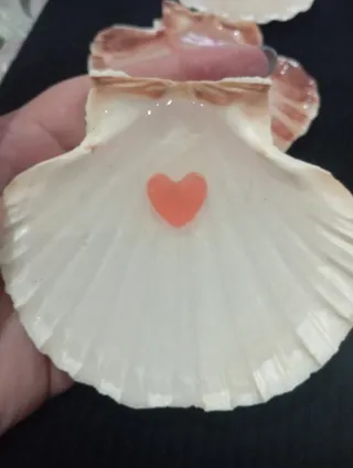 Set di sei conchiglie decorative realizzate con resina epossidica. Ogni conchiglia presenta un design unico. Conchiglie vere di capasanta. Prezzo unitario Si accettano offerte - Decorate con cuori e stelle marine. - Finitura lucida. - Ideali come soprammobili o portaoggetti.