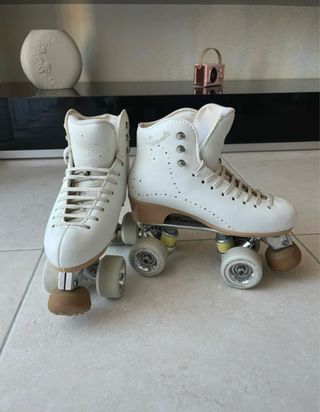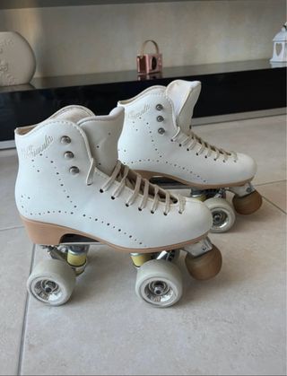 Pattini da pattinaggio artistico marca Belati, taglia 36. - Colore bianco. - Chiusura con lacci. - Design classico. Come in foto, alcune ruote sono da cambiare perché sono consumate.