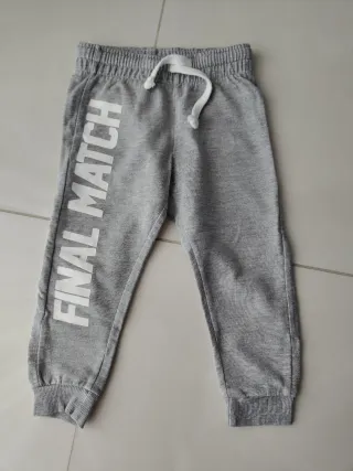 Vendo pantaloni lunghi per bambini taglia 3 anni marca chicco garzati in cotone ideali per lo sport, la scuola, l'asilo e tutti i giorni, elasticizzati in vita con laccetti, colore grigio chiaro con scritta laterale finale match, usati poco, in ottimo stato. L'etichetta interna è stata rimossa perché dava fastidio sulla pelle.