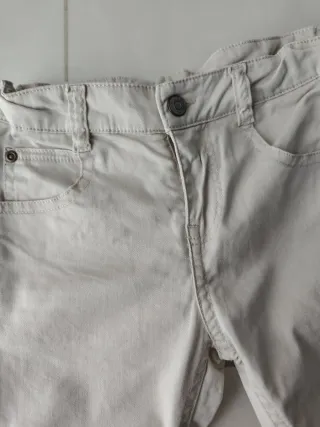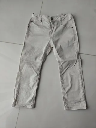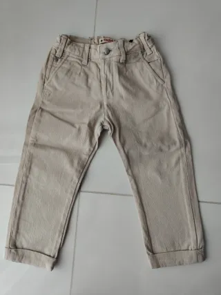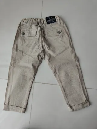 Vendo pantaloni lunghi per bambini in cotone leggero, taglia 36 mesi, equivalente 98 cm, ideali per la mezza stagione, eleganti, colore panna, regolabili in vita mediante elastico e bottoncini, come nuovi, indossati una volta soltanto, marca Primigi, l'etichetta interna è stata rimossa perché dava fastidio sulla pelle.