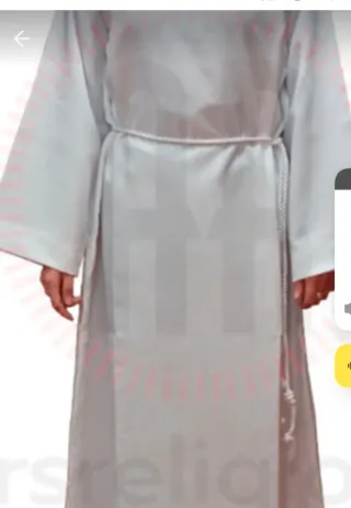 Túnica bianca per la comunione. - Tessuto leggero e confortevole. - Maniche ampie. - Cintura in corda inclusa.