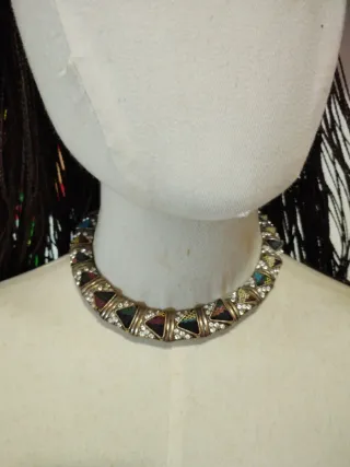 Elegante girocollo rigido di Zara con dettagli colorati e brillanti. - Design rigido. - Inserti geometrici multicolor. - Dettagli luminosi in strass.