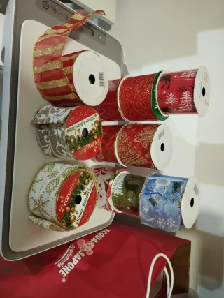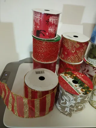 Lotto misto di nastri in stoffa e raso, perfetti per decorazioni natalizie. * In totale sono 11 di cui : 6 Confezioni Nuove e 5 aperte - Nastri con glitter e fantasie natalizie. - Vari disegni disponibili, tra cui alberi, renne e fiocchi di neve. - Ideali per pacchi regalo, addobbi e lavoretti creativi.