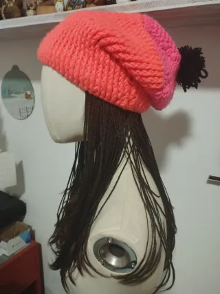 Berretto lavorato a maglia con un design accattivante. Perfetto per aggiungere un tocco di colore. - Lavorazione a uncinetto con filato spesso - Dettaglio pon-pon sulla sommità.