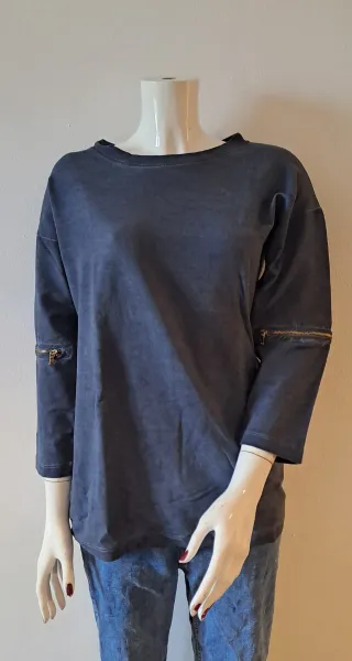 Felpa primaverile da donna T.U., un capo versatile e alla moda. - Maniche a 3/4. - Dettagli con zip sulle maniche.