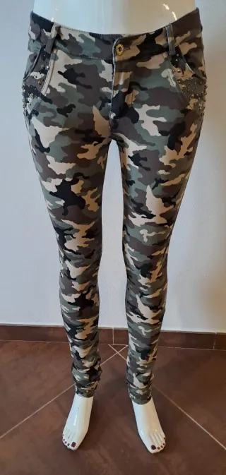 Pantaloni felpa Wit Authentic Girl tg. L con fantasia camouflage. Presentano dettagli con borchie sui taschini anteriori. - Tessuto garzato all'interno. - Vita elasticizzata con passanti per cintura. - Chiusura con zip e bottone.