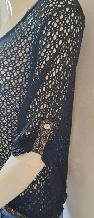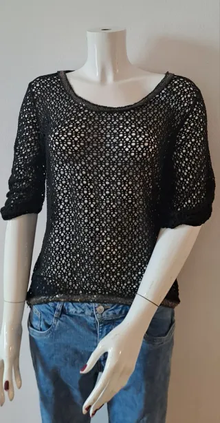 Elegante maglioncino con fili di lurex che donano un tocco scintillante tg. M. - Manica a tre quarti. - Tessuto leggermente trasparente. - Scollo morbido.