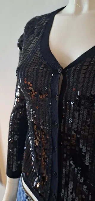 Cardigan Scee con paillettes tg. S. - Maniche lunghe. - Scollo a V. - Chiusura con bottoni.