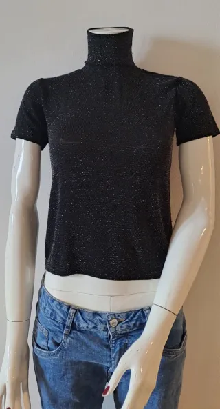 Dolcevita a collo alto con fili lurex tg. XS. - Tessuto elasticizzato. - Maniche corte.