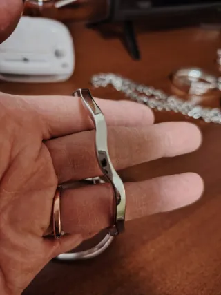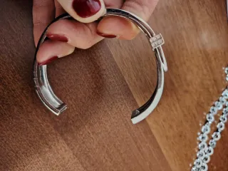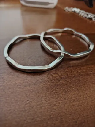 Eleganti braccialetti rigidi dal design ondulato. Un accessorio raffinato per ogni occasione. - Finitura in acciaio lucido. - Forma irregolare e moderna. - Set di due braccialetti.