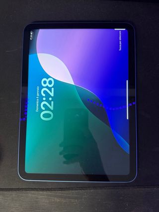 iPad di decima generazione in perfette condizioni, colore blu. - Design moderno e sottile. - Schermo ampio e luminoso. - Fotocamera posteriore. - Logo Apple centrale. - tastiera retroilluminata con touchpad