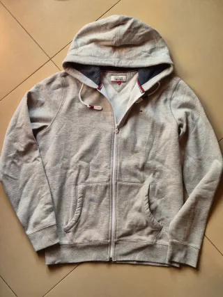 Felpa con cappuccio Tommy Hilfiger di colore grigio. Presenta un design classico con chiusura a zip e tasche frontali. - Cappuccio con laccetti regolabili. - Logo discreto sul petto. - Polsini e fondo a costine.