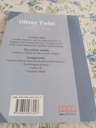 Libro scolastico "Oliver Twist"+ glossario In lingua inglese Alcuni esercizi sono svolti a matita, cancellabili
