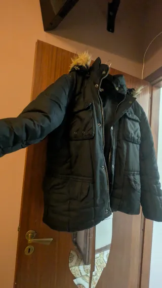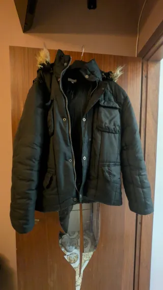 Caldo giubbotto invernale da uomo, perfetto per le giornate più fredde. - Cappuccio con pelliccia sintetica. - Chiusura con zip e bottoni. - Tasche frontali con patta. - Design imbottito.