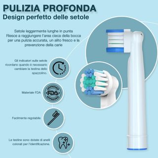 4 Ricambio Testine Spazzolino Elettrico Compatibili con Oral B Braun - Compatibili con diversi modelli di spazzolino elettrico. - Setole morbide per una pulizia efficace. - Anelli colorati per distinguere le testine.