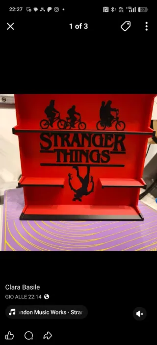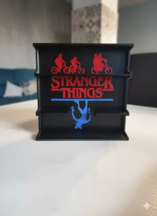 Espositore a tema Stranger Things, perfetto per collezionisti. - Design ispirato alla serie TV. - Colore rosso vivace con dettagli neri. - Possibilità di personalizzare i colori - Tempi di realizzazione 3/5 giorni - Stampa in Pla