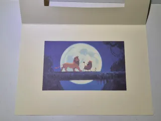 Litografia da collezione Disney, raffigurante una scena iconica de Il Re Leone. NUMERATA A TIRATURA LIMITATA. - Personaggi: Simba, Timon e Pumbaa. - Ambientazione notturna con luna piena. - Cornice decorativa con motivo tribale.