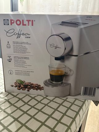 Macchina per caffè Polti, modello coffee s18w. Nuova ancora imballata. Espulsione automatica delle cialde, temperatura caffè regolabile, controllo elettronico quantità erogata. No garanzia - Design moderno e compatto. - Colore bianco. - Ideale per un caffè cremoso.