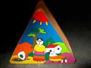 Portatovaglioli dipinto a mano Made in El Salvador porta tovaglioli villagio folk art - Pezzo unico realizzato a mano. - Decorazione con scena campestre e figure stilizzate. - Origine: El Salvador.