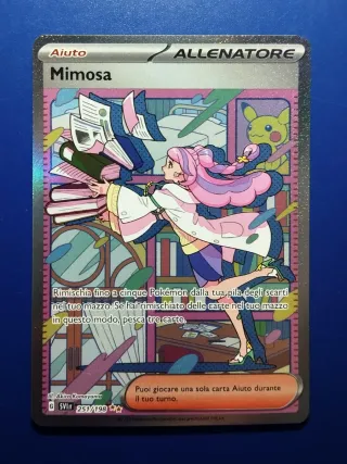 Carta Allenatore Mimosa dal set Pokémon Scarlatto e Violetto. - Numero carta: 251/198 - Rarità: Ultra Rara (Full Art) - Lingua: Italiana - Condizioni: Near Mint (NM)