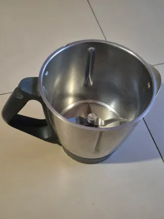 Boccale originale Vorwerk per Bimby Thermomix TM31. Funziona ma è leggermente ammaccato sul bordo. - Materiale in acciaio inossidabile. - Design con manico ergonomico. - Lame integrate per la miscelazione.