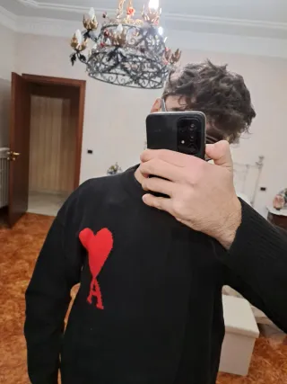 Maglione Ami Paris Nero con Cuore Rosso