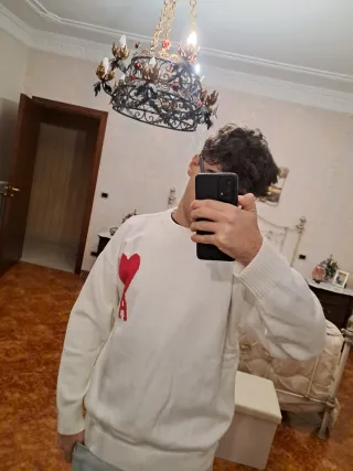 Maglione Ami Paris bianco con cuore rosso