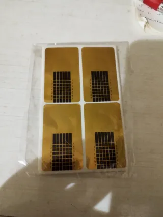 Set di adesivi per la ricostruzione delle unghie. - Colore oro. - Design a griglia con numerazione per la misurazione.