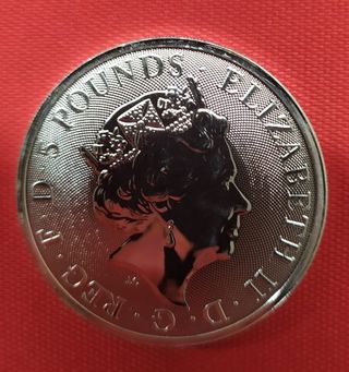 Questa è una moneta d'argento da 2 once "White Greyhound of Richmond" del 2021, l'ultima della serie "Queen's Beasts" della Royal Mint. Il design raffigura il Levriero bianco di Richmond, un distintivo araldico legato a Enrico VII e al Casato dei Tudor. Il levriero è simbolo di onore, forma fisica, lealtà e fedeltà. E' la decima ed ultima moneta della serie, coniata per commemorare l'incoronazione della Regina Elisabetta II. - Peso: 2 oz - Purezza: 999.9 Fine Silver - Design: Greyhound con stemma reale e rosa Tudor