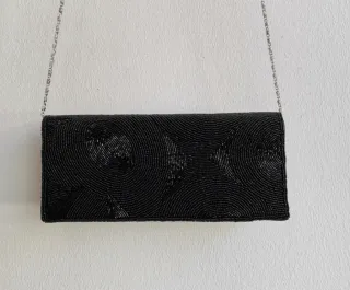 Elegante pochette da donna, perfetta per completare un outfit da sera o da cerimonia. La sua finitura scintillante aggiunge un tocco di classe. - Design a busta. - Decorazione con perline. - Catena metallica sottile per portarla a spalla o a mano. #pochette #pochettedonna #donna #mujer #mulher #bolso #bolsomujer #bolsadehombro