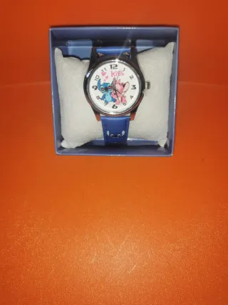 Orologio con personaggio di Stitch. - Cinturino blu con dettagli. - Quadrante con disegno di Stitch e Angel.