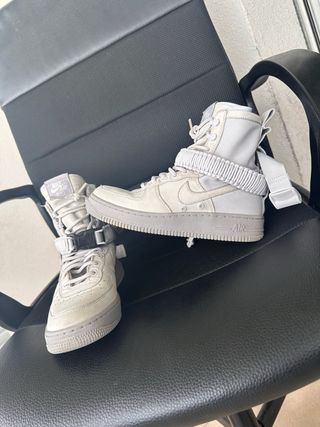 Scarpe Nike SF Air Force 1 High Vast Grey. - Design high-top. - Dettagli con fibbia e cinturino. - Tomaia in pelle e tessuto.