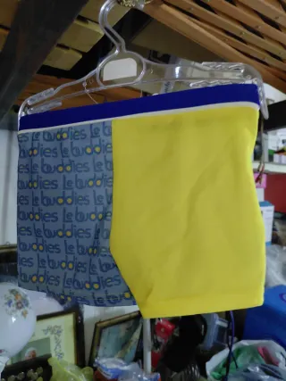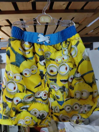 Costume da bagno per bambini con stampa Minions. - Taglia 4 anni. - Colore giallo vivace con stampa dei personaggi. - Vita elasticizzata con laccetti.