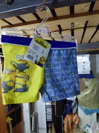 Costume da bagno originale dei Minions, taglia 8 anni. Perfetto per le giornate di sole. - Stampa colorata con i personaggi dei Minions. - Tessuto confortevole per il gioco e il nuoto.