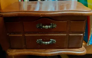 Elegante portagioie in legno massello, un pezzo unico che evoca lo stile degli anni '60. - Design vintage. - Maniglie decorative in metallo.