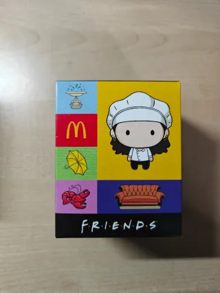 Gadget Funko Pop a tema Friends e McDonald's. - Personaggio: Ross Geller. - Design chibi con scimmietta. - Elementi iconici Friends: fontana, McDonald's, ombrello, aragosta, divano.