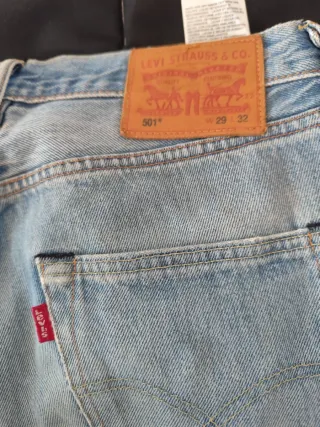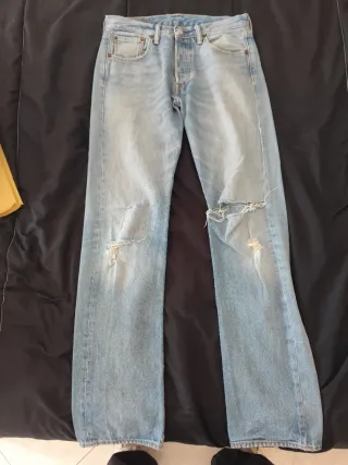Iconici jeans Levi’s 501 original fit in denim chiaro effetto modello classico con gamba dritta,uno dei modelli più iconici di Levi’s. Il lavaggio chiaro con leggere usure e strappi dona un look vintage molto attuale, perfetto per outfit streetwear o casual. • Modello: Levi’s 501• Taglia: W29 L32• Vestibilità: straight fit• Colore: denim chiaro vintage• 100% cotone• Red tab Levi’s originale Condizioni buone,stile vintage Vestibilità perfetta anche per fit oversize o stile unisex.