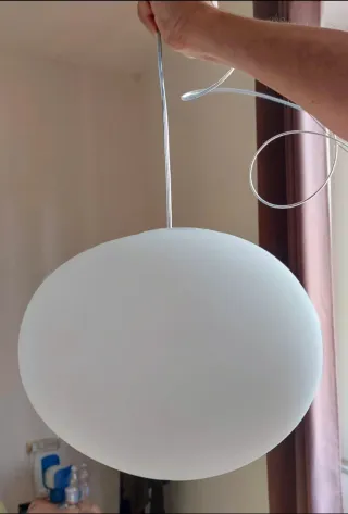 Lampadario a sospensione modello Gregg di Foscarini. Un pezzo di design che illumina con stile. - Diffusore in vetro soffiato. - Struttura interna in plastica.