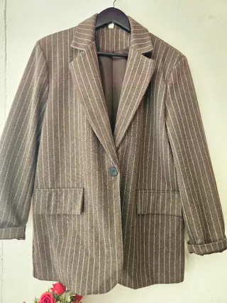 Giacca dal taglio elegante, perfetta per un look sofisticato. - Tessuto caldo e confortevole. - Vestibilità che valorizza la figura. - Design a righe verticali. Vestibilità compda,fino ad una XL Ascelle 55 cm