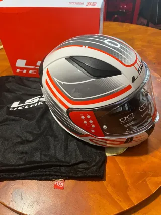 Casco integrale LS2 Rapid II, ideale per la moto. - Colore bianco, nero e rosso. - Visiera trasparente. - Interni confortevoli. Omologazione ece22.06 Mai usato taglia xl Nuovo con cartellino