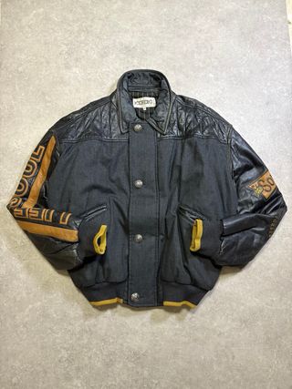 Iconica giacca varsity Iceberg, un capo unico che unisce stile e qualità. - Realizzata in Italia. - Patch Soul applicate sulle maniche. - Dettagli in pelle nera e inserti color cuoio. - Tessuto principale in lana. - Fodera interna a righe.