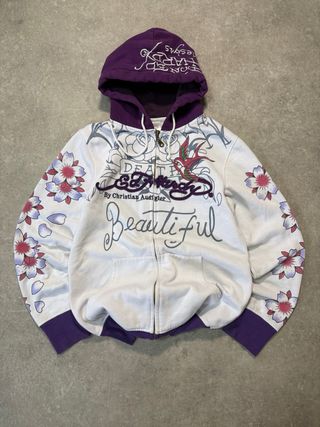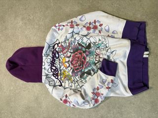 Felpa con capucha Ed Hardy, estilo vintage y2k con detalles góticos. - Diseño con estampado de flores de cerezo y pájaro. - Cierre completo con cremallera. - Capucha ajustable con cordones. - Puños y cintura elásticos. Fit s Condizioni ottime Misure in foto No resi per taglia